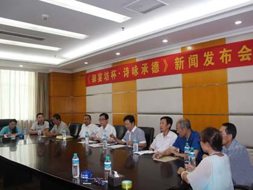 文运同国运相牵,文脉同国脉相连。本次活动由《诗词之友》编辑部、承德市作家协会、承德御品酒业有限公司主办,承德市文广新局、承德市旅游发展委员会、承德市文物局、承德市体育局、承德广播电视台、承德日报社等16家单位协办。著名作家、诗人、书法家、中国作家协会会员、《诗词之友》张脉峰主编因时间原因未能参加新闻发布会,专程致电致辞,表示祝贺和关注。